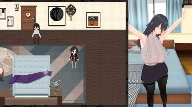 游戏画面:左侧为2d像素画面,右侧为3d实时渲染动画。